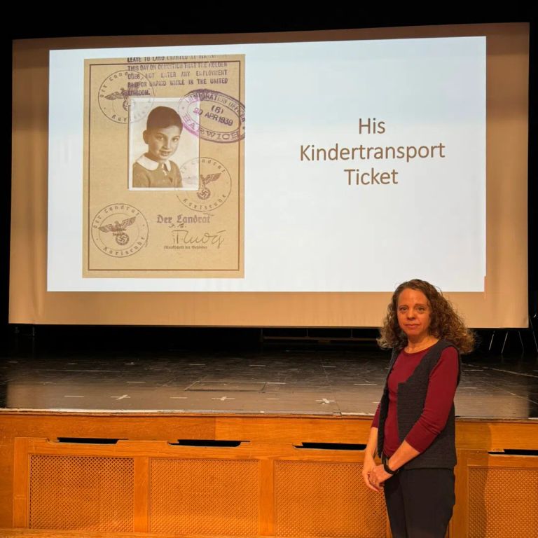 Ms Sanitt (Head of German) told us about her father, Herbert Emsheimer, and how he had a few vivid memories of life in Germany. Emsheimer remembers the violent Kristallnacht, the Night of Broken Glass, as his grandad was attacked on this night, and his mother was paraded around the village having food thrown at her. After Kristallnacht, Ms Sanitt’s father’s grandma decided that they had to leave their home; many Jews were still reluctant, as they thought there would be a different outcome. Kristallnacht was also important as the British decided to relax their immigration laws and allow a few unaccompanied children to travel here. They would be out on trains called Kindertransport. Ms Sanitt’s father and aunt were lucky as they were able to obtain these Kindertransport tickets.Unfortunately, some of Ms Saint’s family, including her great-grandparents and cousins, did not make it in the concentration camps. However, her grandmother and grandfather were able to escape just in time.