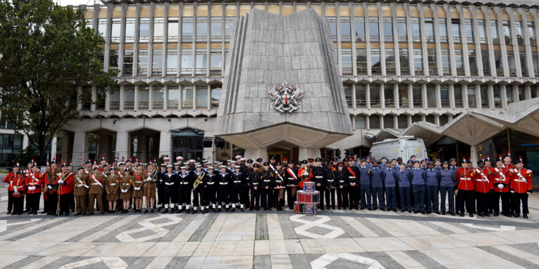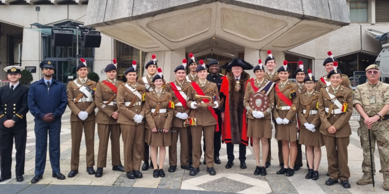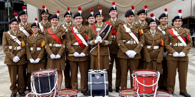 On Sunday 13 October, the Corps of Drums took part in the Lord Mayor's Cadet Music Competition at the Guildhall in Central London. The event took place in front of numerous dignitaries, including The Representative Lord Mayor Sir Andrew Parmley, Captain Claire Lawrence, Irish Guards Director of Music and Officer Commanding, WO2 Jamie Gunn, HMS Collingwood Royal Marines Bandmaster, WO Paul Phelan, RAF Regiment Bandmaster and Senior Drum Major, and Alan Hughes, Worshipful Company of Musicians Junior Warden.