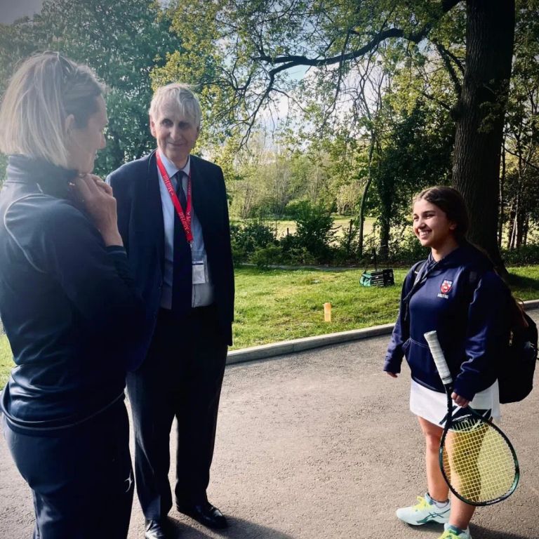 Tim not only enjoyed a short tour of our glorious grounds but also took the time to interact with our Senior Boys and Girls Tennis captains and players, watching their exhibition tennis matches. He shared fond memories of his time as a pupil, noting that the courts remain in the same location and expressing relief that the rather difficult Mill Hill-invented game of one-handed hockey had ceased play!