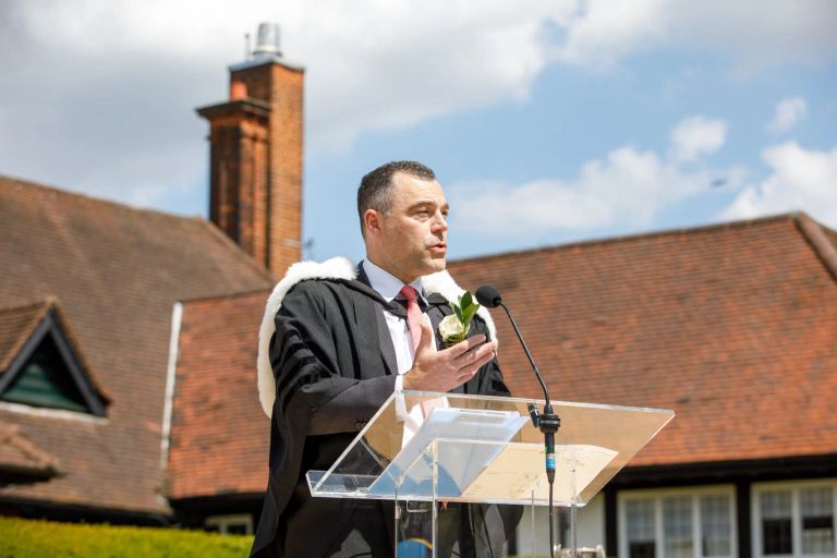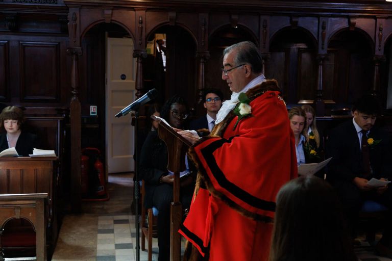 The day was sunny, continuing the tradition of bright and cheerful weather for our special occasion. The celebrations began with the Foundation Day Service for Commemoration of Founders and Benefactors in the School Chapel. The Choir’s beautiful singing filled the space with a sense of joy. Reverend Ryan Venn-Dunn, Foundation Chaplain, led a wonderful service and delivered a moving prayer. Mr David Benson, Head, recited the Act of Commemoration, honouring our heritage and the values that define Mill Hill. We were also honoured to welcome Councillor Tony Vourou, the Mayor of the London Borough of Barnet, who read out Matthew Chapter 13: The Parable of the Sower