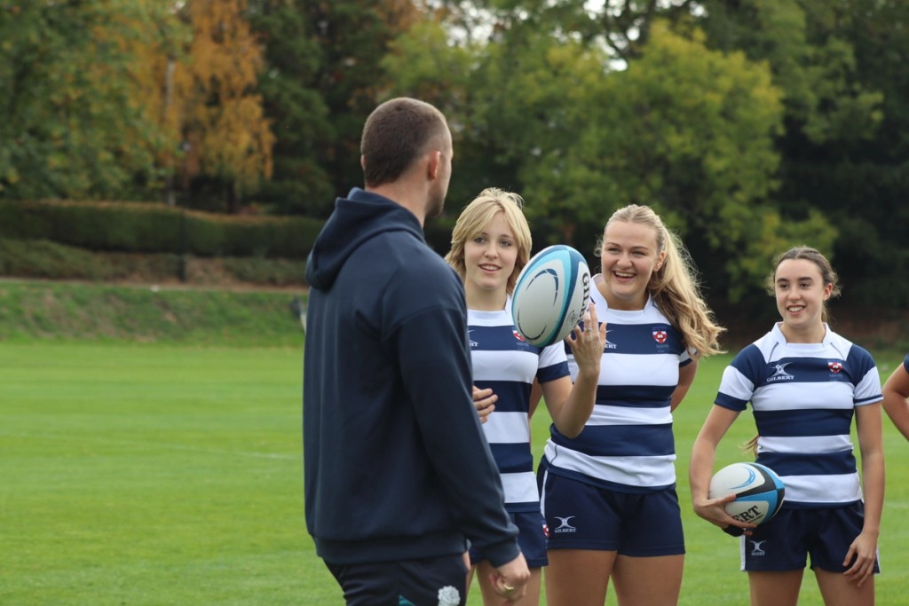 Ben spent time with our pupils, starting with a Q&A and skills session with our U15A boys, followed by an engaging tips and tricks session with a mixed year group of girls. He then delivered an inspiring five-minute talk and shirt presentation to our 1st XV before they departed for their fixture against Harrow.